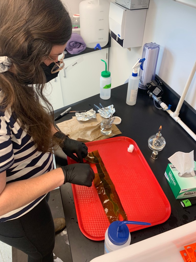 Collecting algae under the sea ice in McMurdo Sound, Antarctica. Photo by: Brett Seymour McMurdo Sound, AntarcticaMcMurdo Sound, Antarctica. Photo by: Brett SeymourNereocystis gametophyte cultures from the Hakai germplasmHarvesting kelp spores for the Hakai biobank. Photo by: Bennett WhitnellHarvesting artificial gametophyte banks in Owen Bay, BC. Photo by: Bennett WhitnellMcMurdo Sound, Antarctica. Photo by: Brett SeymourInstalling artificial gametophyte banks to test gametophyte longevity in nature. Photo by: Bennett WhitnellKelp gametophyte eDNA sample. Calvert Island, BCArtificial gametophyte banks 5 months after deploymentIn-situ experiment with artificial gametophyte banks. Photo by: Bennett WhitnellAlberto Lab selfie with the kelp gametophyte culturesCollecting gametophyte eDNA in kelp forests and urchin barrens. Calvert Island, BCKelp spore release and gametophyte culturing for the Hakai biobankPosing in the coralline photo quadrat – Triquet Island, BCSampling artificial gametophyte banks in Owen Bay, BC. Photo by: Bennett WhitnellLongest kelp recorded on the Central Coast of BC! – We needed 8 people for a scale bar. Seasonal Pyropia abbottiae monitoring survey – Little wolf Beach, Calvert IslandTranslocating seaweed cultures into the intertidal – Starfish Island, BCAdam’s Harbour, Calvert Island, BCSparlingia pertusa in Howe Sound, BCSeasonal Pyropia abbottiae monitoring survey – Little Wolf Beach, Calvert Island, BCHakai Institute Deep Sea Bioblitz 2019 – Calvert Island, BCMartone Lab at the annual Botany Curling Bonspiel 2018Bossiella pseudodichotoma – 5th Beach, Calvert Island, BCSeaweed harvest surveys with Hieltsuk First NationViews en route to the fieldBossiella sp. – Calvert Island, BCSurface views after successful rockfish surveys – Howe Sound, BC Lessoniopsis littoralis – 5th Beach, Calvert Island, BCmid-survey Pyropia snack