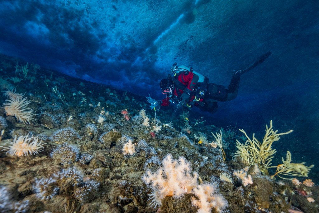 Sampling algae in McMurdo Sound, Antarctica. Photo by: Brett Seymour